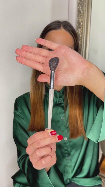 This angled highlighting brush is both gentle and long-lasting, with a soft, curved head. It's a top pick for many, as its fluffy bristles easily apply blush, highlighter, or powder to the skin for a seamless finish.